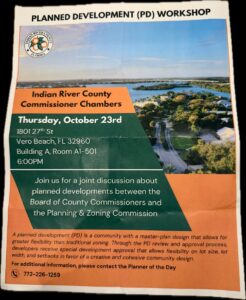 Hey all – If you are interested in how the County Government is working to make development easier in Indian River County you might want to attend the planning meeting Thursday 10-23-25 at 6pm. See below.